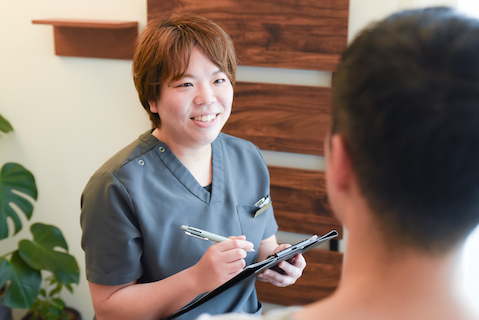 「どういったことでお困りか」また、「どんな状態を目指していきたいか」といったご要望から、「日常生活ではどんな姿勢が多いか」といった習慣までじっくり伺っていきます。カウンセリングを丁寧に行うことによって、お客様のご要望を正しく把握し、最適な施術を行います。