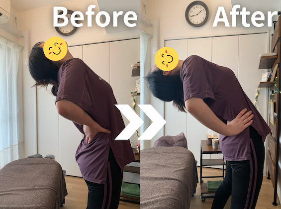 施術前と同じ動作チェックを行い、「可動域が上がっているか」「動かしやすくなっているか」「痛みは和らいでいるか」などを確かめます。