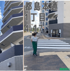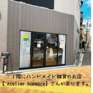 ⑥信号を渡って、1階にハンドメイド雑貨屋さんが入っている角のマンションです