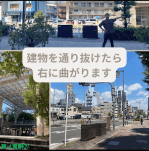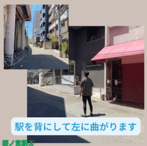 ①東出口の改札を出て左、外に出たら道を左方向に進みます