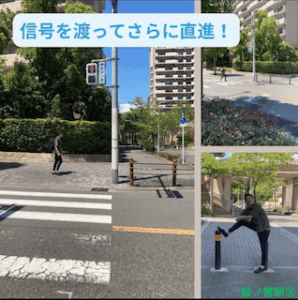 ⑦大通り沿いを「都島本通1西」の信号を左側に渡って、セブンイレブンやコインパーキングがある大通り沿いを直進