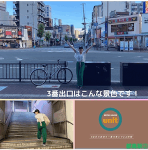 ①改札を出てすぐ左手の3号出口から、階段かエレベーターで地上へ