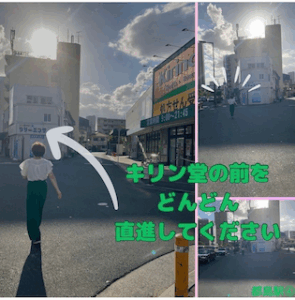 ④右手にキリン堂が見えてきますが、そこも通り過ぎてさらに直進