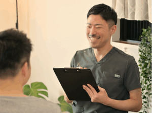 カウンセリングから最終チェックまでの内容を踏まえて、改めて身体の状態や、お客様自身も気づかなかった姿勢のクセをフィードバックさせていただきます。動けるようになった身体の状態を下げないためにも、平均で1~2週間に一度のペースで施術を受けていただいてるお客様が多いです。