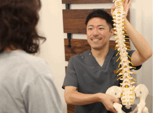 「ここに痛みが出ているのは、ここがこういう風に歪んでいるからだ」という解剖学に基づいた視点から、「骨格の歪みを調整」することにこだわっています。